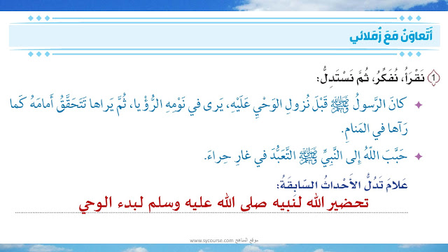 حل وشرح درس نزول الوحي على النبي ص لصف الثالث الفصل الاول