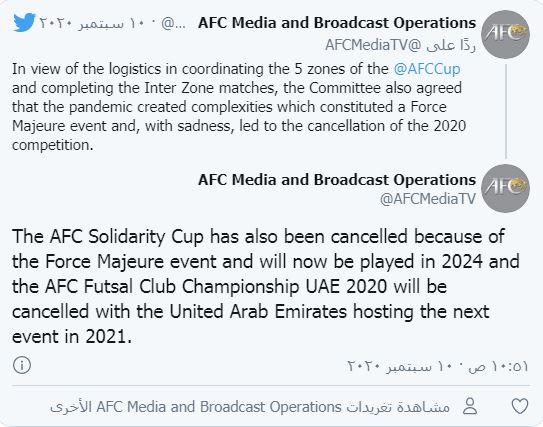 رسميا إلغاء كأس الاتحاد الآسيوي النهار العربي