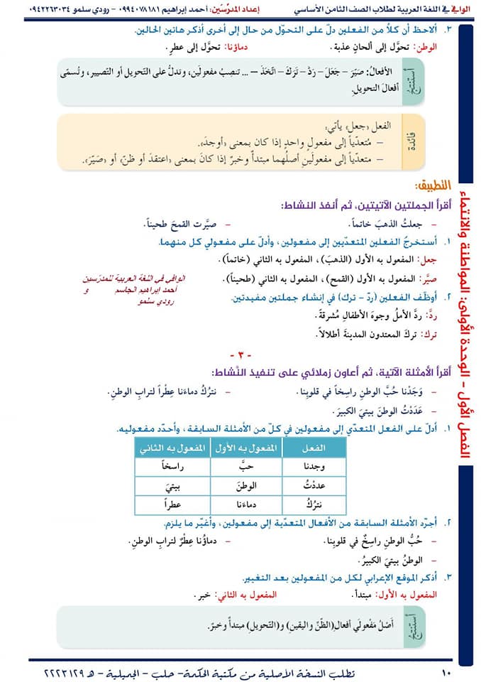 شرح كتاب القواعد لمادة اللغة العربية واجابات التدريبات من صفحة 5 ولغاية صفحة 12 الصف الثامن الفصل الاول منتديات صقر الجنوب
