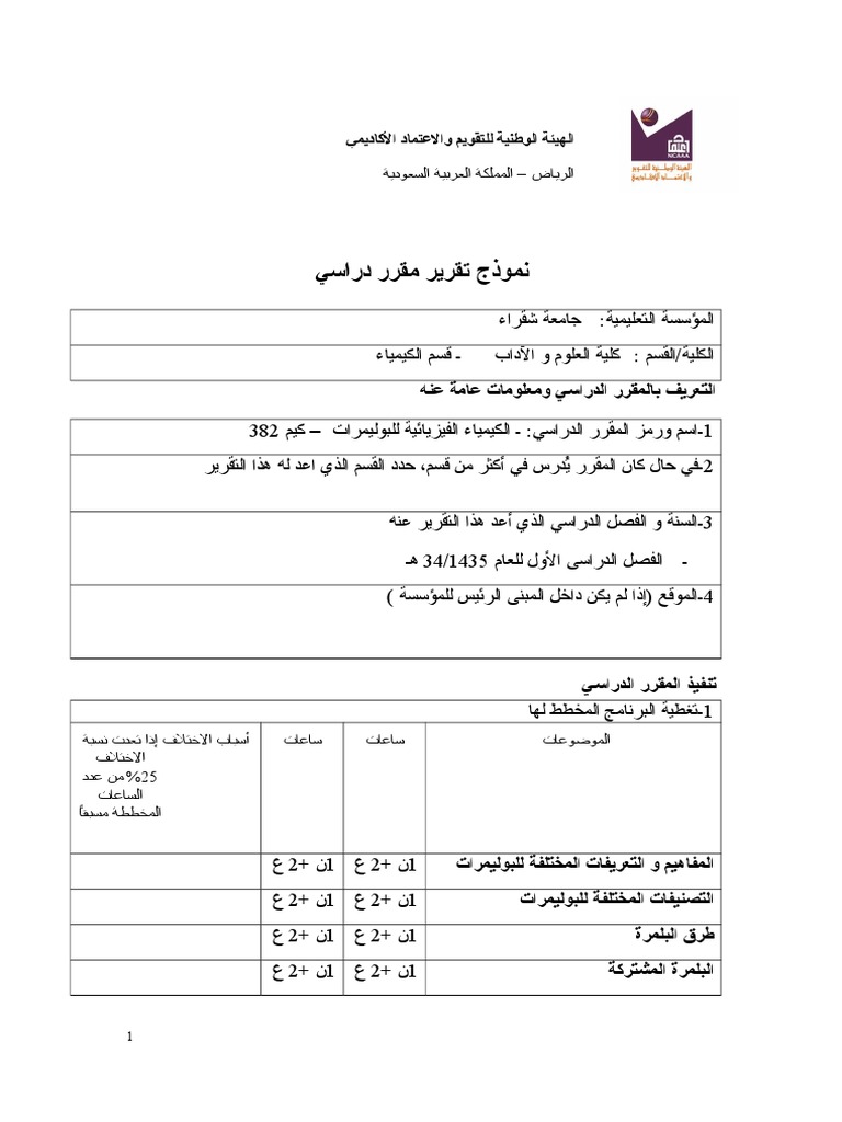 تقرير مقرر الكيمياء الفيزيائية للبوليمرات